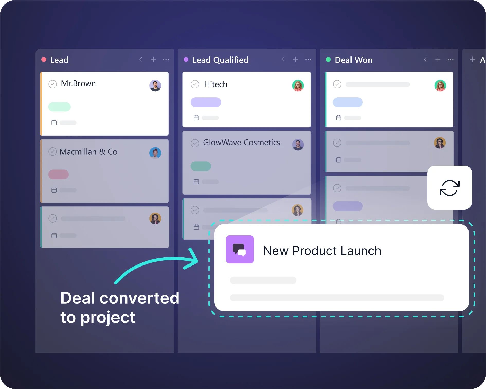 Once the deal is closed, automatically convert it into a project - No more switching tools. No more losing context.