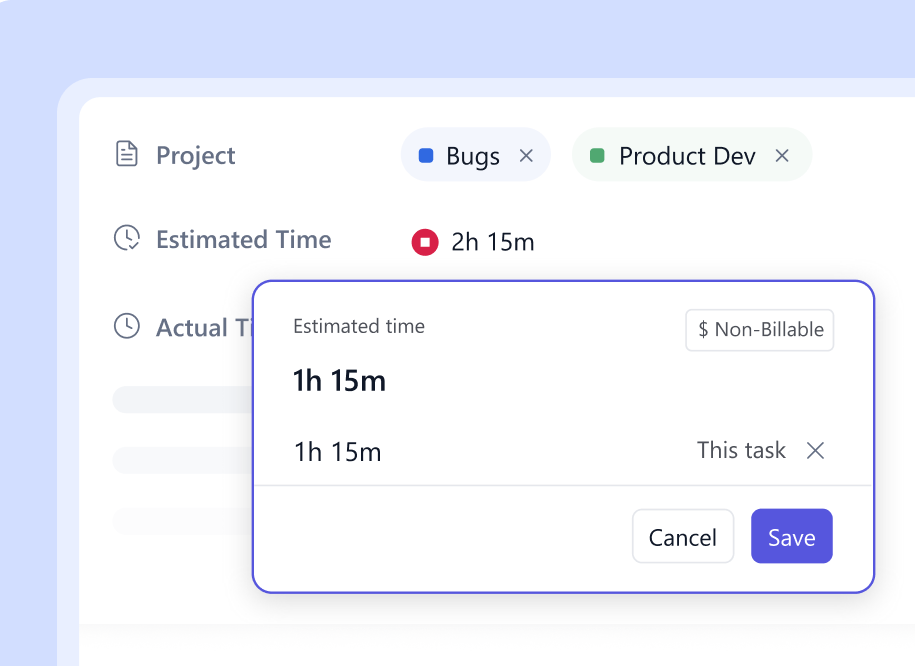 Compare estimated vs. actual time your team spends working on projects. Deliver client work profitably and forecast revenue accurately.
