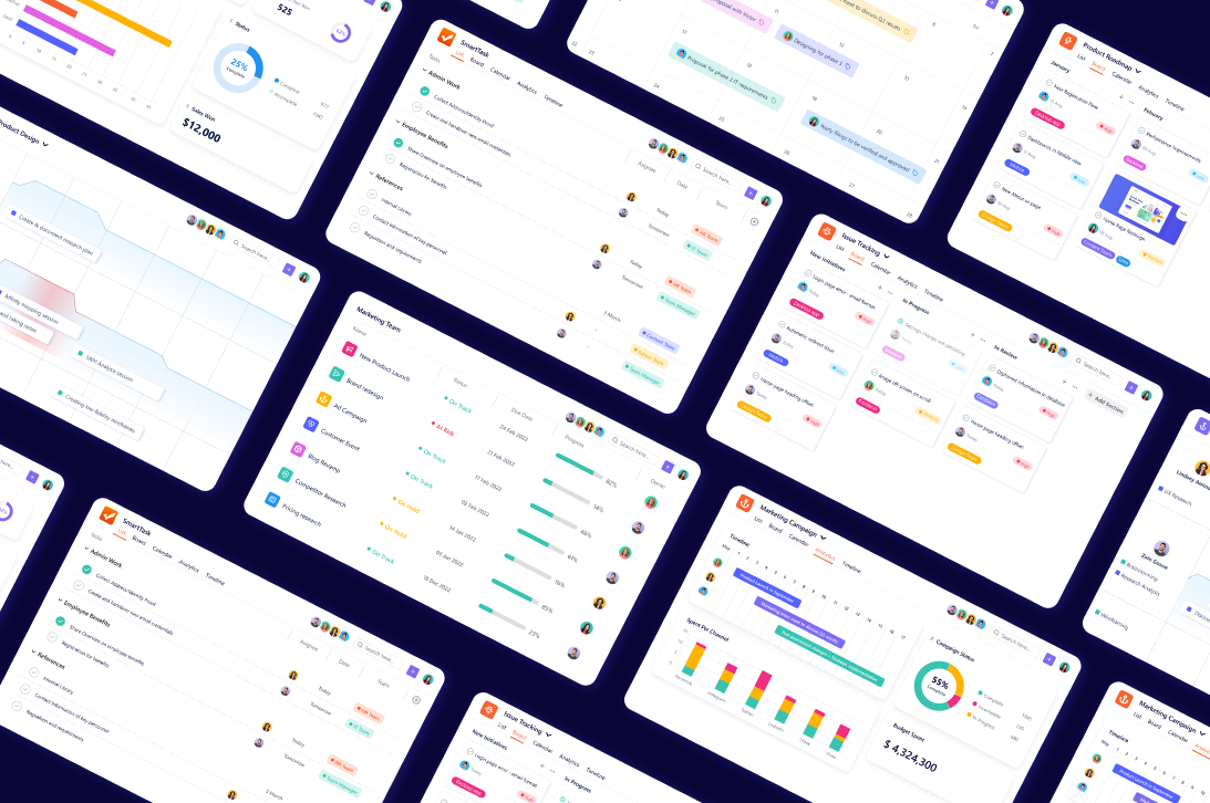 Task management is the process of taking a task from concept to completion. It involves setting deadlines, delegating responsibilities, and removing roadblocks. Did you know, over 20,000+ teams use SmartTask to get their work done efficiently.
